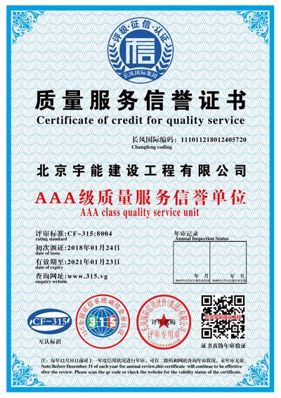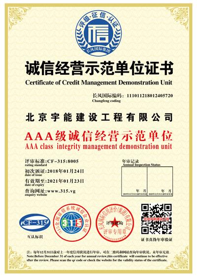 北京宇能建設(shè)工程有限公司成立于2014年5月16日,前身是北京博遠(yuǎn)天宇電力科技有限公司,注冊(cè)資金6600萬元。具有《市政公用工程施工總承包叁級(jí)》、《機(jī)電工程施工總承包叁級(jí)》、《建筑工程施工總承包叁級(jí)》、《建筑裝修裝飾工程專業(yè)承包貳級(jí)》、《電子與智能化工程專業(yè)承包貳級(jí)》、《鋼結(jié)構(gòu)工程專業(yè)承包叁級(jí)》、《防水防腐保溫工程專業(yè)承包貳級(jí)》、《建筑幕墻工程專業(yè)承包貳級(jí)》、《模板腳手架資質(zhì)》等;同時(shí)榮獲AAA誠信企業(yè)證書、AAA級(jí)誠信經(jīng)營示范單位、AAA重合同守信用企業(yè)證書、AAA級(jí)企業(yè)資信等級(jí)證書。鑒于公司領(lǐng)導(dǎo)的為人誠信,作風(fēng)良好,經(jīng)315全國征信系統(tǒng)誠信企業(yè)認(rèn)證中心頒發(fā)誠信企業(yè)家榮譽(yù)證書及誠信經(jīng)理人的榮譽(yù)稱號(hào)。